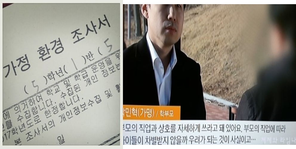 새 학기가 되면 라디오·전화·전축 등 집에 있는 값비싼 물건은 물론이고 부모의 직업과 학력까지 써내야 했다. 그리고 가정환경 조사서를 바탕으로 아이에 대한 대접을 달리하는 학교나 선생님들이 있었다.