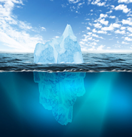 ‘빙산(Iceberg)’은빙하가 바다까지 흘러나와 자연스럽게 생긴 얼음 산이다. 빙산은전체의일부분만물위에떠있고대부분은수면아래에모습을감추고있다. 우리가 “어떤일의대부분은숨겨져있고겉으로드러난것은일부에불과하다”는의미로사용하는‘빙산의일각’이라는표현도여기서유래했다.