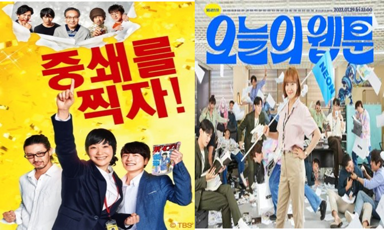 드라마 <오늘의 웹툰>은 국내 굴지의 IT기업 네이버가 아닌 네온에서 웹툰 편집자라는 꿈을 이루어가는 주인공들의 좌충우돌 성장기가 주된 스토리다. <오늘의 웹툰>은 2016년에 방영된 원작 일드 <중쇄를 찍자!>를 리메이크한 작품이다.