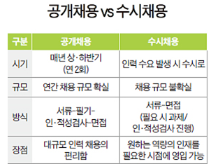 공채는 한국과 일본 등에만 존재하는 독특한 채용방식이다. 일본은 아직도 공채 중심의 채용문화가 여전하지만 한국은 최근 급속도로 수시 채용으로 전환하는 추세다. ‘공채’와 ‘수시 채용’의 차이는 무얼까?