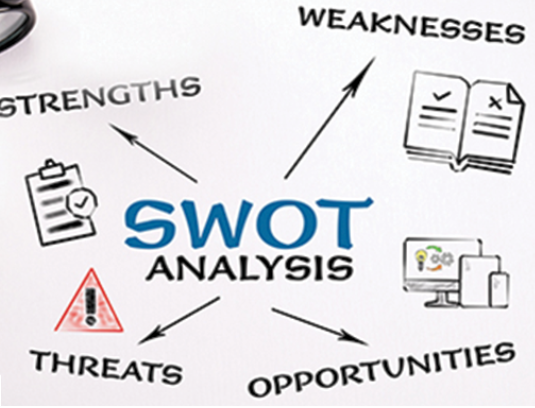 SWOT 분석은 본래 기업의 환경 분석을 통해 마케팅 전략을 수립하는 기법이다. 기업이 직면한 내외부 환경을 강점(Strength)과 약점(Weakness), 기회(Opportunity)와 위협(Threats) 요인으로 구분해서 파악한다.