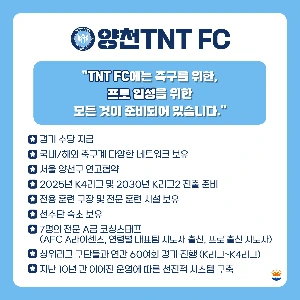 양천 TNT FC는 서울시 양천구를 연고로 활동하는 축구팀이다. 흔히 '축구사관학교', '프로선수 양성소'라고 불리는데 실제로 여기서 같이 훈련하고 활동한 선수들이 프로나 세미프로에 많이 진출하였다. 이팀은 현재 K5리그에서 활동하고 있지만 내년 2025시즌에는 K4리그 진출을 목표로 하고 있다. 팀은 크게 2팀으로 나뉘어져 있는데(A팀,B팀),