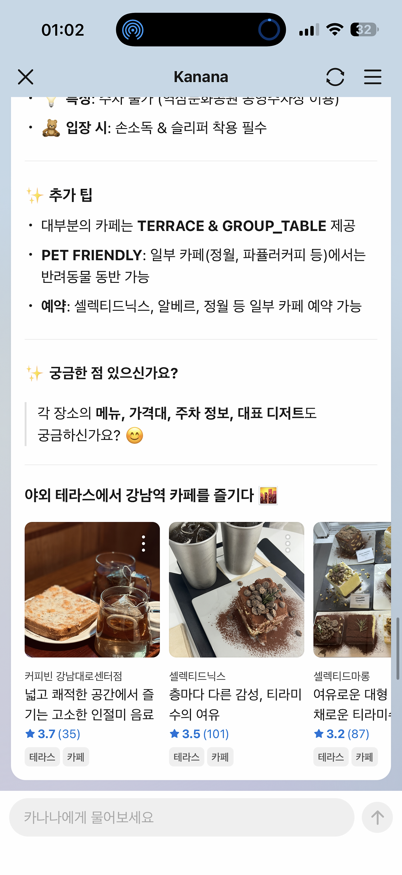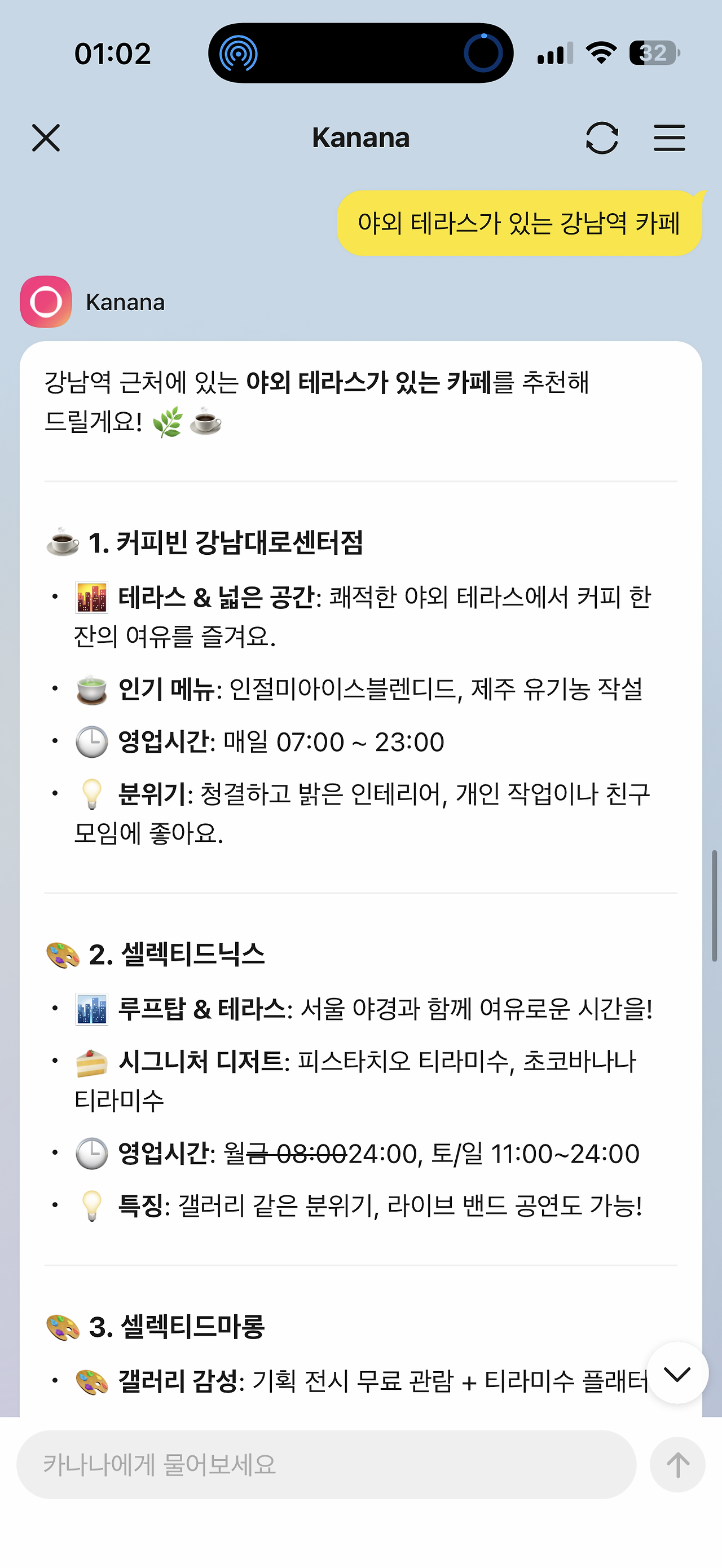 예를 들어, 대화 중 “이번 주말에 약속 잡자”는 문장을 인식하면 일정 생성을 제안하고, “근처 맛집 알려줘”에는 카카오맵을 통해 주변 식당 정보를 제공