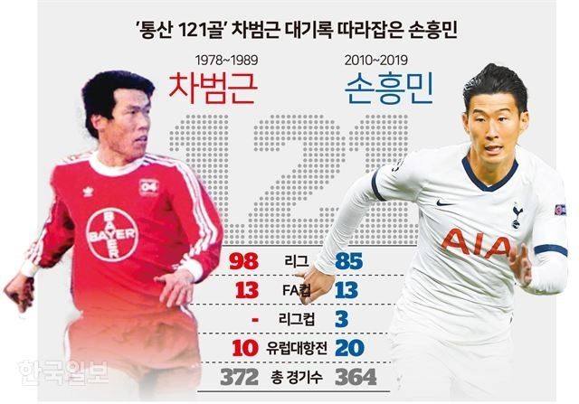 차범근은 시즌 평균 33.9경기, 손흥민은 40.5경기를 뛰었다.