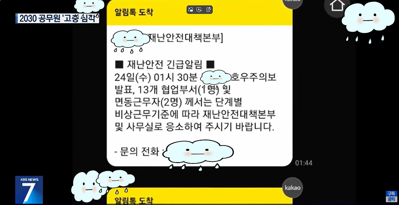 사람을 갉아먹는 방식은 ‘비상’이라는 단어 앞에서 정당화된다. 그 단어는 면죄부처럼 작동한다. 새벽 1시에 호우경보가 발령되면 전 직원의 절반이 그때부터 비상근무다. 꼭 절반이 필요한 상황이 아닌데도 절반이 모인다. 잠도 못 자고 눈 비비고 나온 직원들이 사무실에 앉아 기상청 예보를 확인한다. 현장에 실제로 투입되는 인원은 일부뿐이다. 나머지는 ‘혹시 모를 상황’을 대비해 대기한다. 새벽 4~5시에 해제되면 집에 가 두세 시간 눈을 붙이고 다시 출근한다. 그날 하루는 통째로 흐릿하다. 업무는 밀리고 피로만 남는다. 일이 제대로 될 리가 없다.