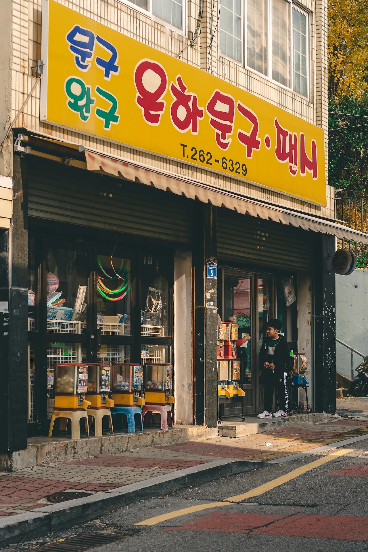 밖으로 사진을 찍으러 이리저리 자리를 옮겨 다닌다. 골목과 골목 사이, 아파트와 주택 사이, 도로와 인도 사이를 누비다 보면 많은 장면들을 마주하게 되는데 오늘은 한 초등학교 옆 문방구에 멈춰 섰다. 노란 배경에 쓰여 있는 ‘문방구’란 글씨가 어림잡아 10여 년은 된 곳 같았다. 멀찍이 문방구를 바라보는데 한 남자아이가 앞을 서성였다. 가게 문이 닫혔는지 들어가지 못한 채로 꼼꼼히 안을 살피고 있었다. 그런 모습이 귀여워 문방구와 아이를 사진으로 남겼다. 1-2컷을 찍고 나자 문방구에 아무도 없음을 확인한 아이는 갑자기 방향을 틀고 내게 다가와 물었다.