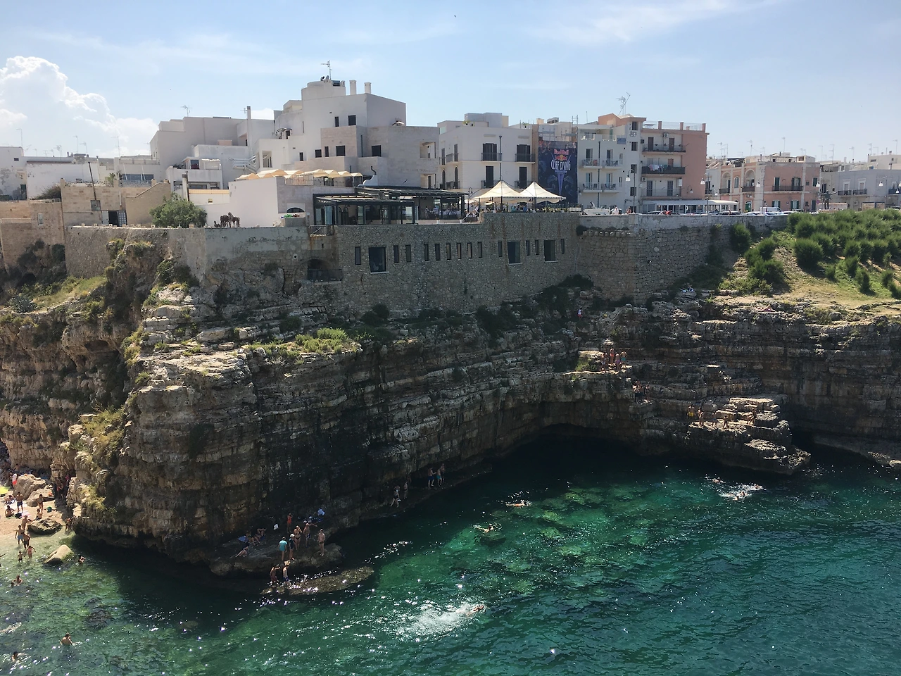 결국 두시 반까지 누워있다가, 옮길 숙소도 찾다가, 출국 전에 들어온 인터뷰도 정리하고... 어쩌구 저쩌구 게으름 피웠다. 결국 두시. 영이는 나가기 귀찮아하는 눈치였지만 대단한 의지로 어떻게 잘 끌고 나왔다. 바리에서 해안선을 따라 달리는 기차를 30분 타고, 도착하자마자 젤라또 하나 먹고(랜덤 젤라또집에서도 과일맛이랑 초코맛까지는 종종 비건- 3덩어리에 2.5유로!) 귀여운 남직원이 있는 포카치아 집에서 말도 안 되게 맛없는 포카치아와 맥주도 사먹고, 해변으로 직행. 근데 세상에, 해변이 아찔하도록 아름다웠다. 내 인생에서 제일 아름다운 해변이다. 바닥이 다 보이는 파란 바다를 둘러싼 하얀 절벽과, 절벽 위 아슬하게 놓인 하얀 남부 이탈리아식 돌집들. 하루도 비가 오거나 구름조차 끼지 않는 이탈리아 남부의 완벽한 햇살과 그럼에도 30도 초반 이상으로는 넘어가지 않는 기온, 건조하고 시원한 바람. 이탈리아. 당신은 완벽해.