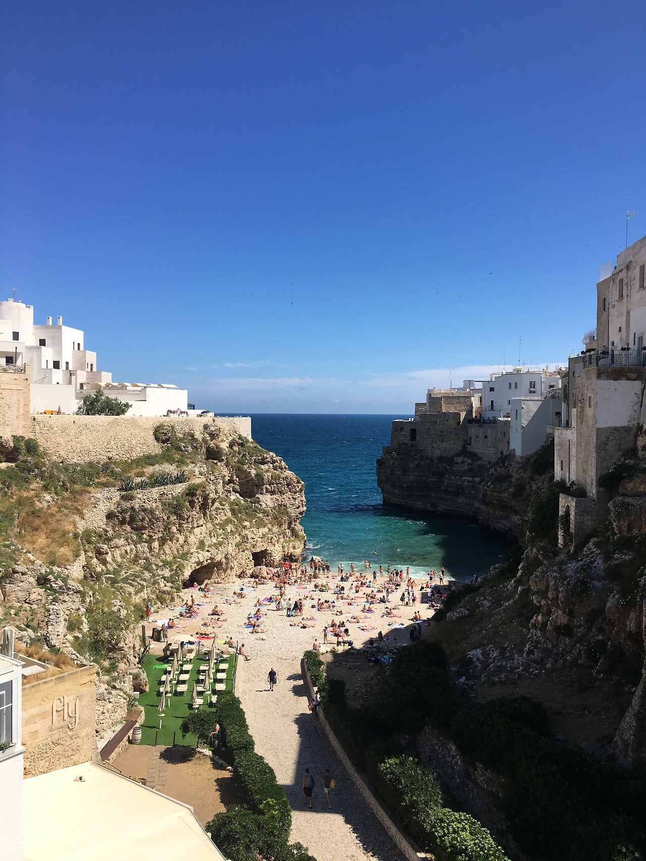 내일 바람이 불거라더니 오늘은 조류도 세다. 전에 폴리냐뇨에 왔을 때는 그렇게 평화로울 수가 없었는데, 아름다운건 똑같지만 이번엔 계속 조류에 휩쓸려 다니다 여기저기 상처만 났다. 그래서 수영도 신나게 못하고 피신. 다만사람들이 계속 절벽에서 다이빙을 하는데 그게 너무 하고싶었다. 한참 다이빙하는 사람들 옆에서 구경만 하다가 결국 나도 소심하게 다이빙했는데, 나름 멋지고 자연스럽게 들어갔으나 팬티 다 벗겨지고 물 엄청 먹고 조류에 휩쓸려서 이대로 죽는건가 했다. 영이가 건져올려줄 때는 엄청 절박했는데, 처절하게 올라와서 물어본 것: 나 멋졌어? (멋졌다고 한다.)