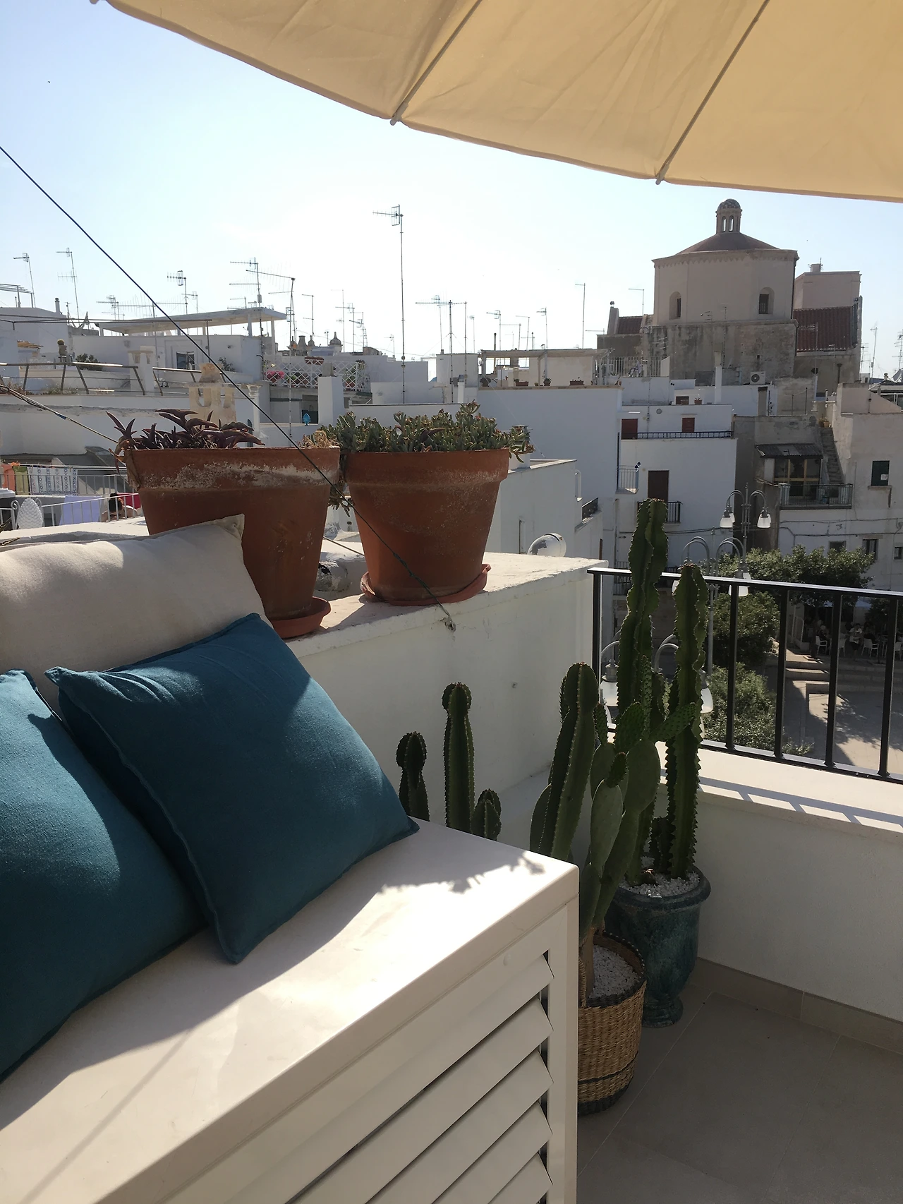 그렇게 금방 폴리냐뇨에 도착, 숙소를 찾아갔다. 또 웬걸, 숙소가 너무 좋다. 이번엔 방 한칸짜리 4층 집이다. 올드타운 광장 바로 옆 건물로 위치도 완벽하다. 1층은 쇼파와 화장실이 있는 응접실, 2층은 침실, 3층은 부엌과 화장실, 4층은 루프탑 테라스다. 심지어 작은 테라스는 모든 층에 하나씩 꼭 있다. 이것도 이탈리아의 특성인데, 테라스나 광장 없인 못산다. 모든 집엔 테라스가 꼭 있어야 하고, 광장이나 테라스, 길가 카페의 노천 테이블에 앉아 커피를 마시고 햇빛을 받으며 수다 떠는게 이탈리아인의 아주 아주 중요한 일상. 햇빛과 비타민d에 환장하는 내겐 정말 살기 좋은 곳. 게다가 옥상에선 건물의 하얀 옥상과 바다 아주 끄트머리, 광장이 훤히 보인다. 처음 예약할 때 너무 싼데다 후기가 없어서 걱정했는데 정말 최고로 운 좋은 날이다.