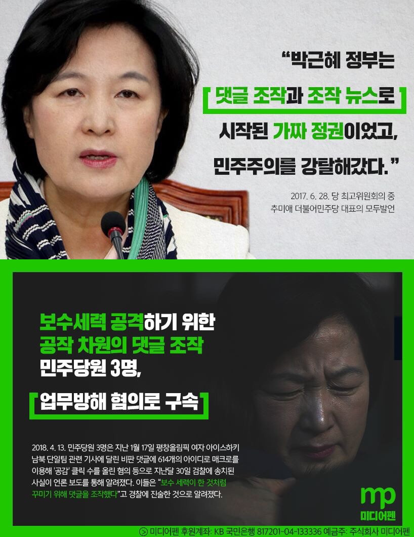 강적들 대표 논객 전원책은 이날 출연한 전직 검사 출신 김경진 의원에게 이렇게 질문했다. “검사가 드루킹 사건에 대해 계좌 추적도 안 하고 당연히 해야 할 수사를 하지 않는 이유는 무엇입니까?” 이에 김경진 의원은 “ 이번 사건을 과거의 박근혜 정부 당시 국정원 댓글 조작 사건과 비교할 사안이 아니다. 불법의 정도가 다르고 굳이 불법의 정도로 따지자면 10/1 정도밖에 되지 않을 것이다. 그래도 범죄는 범죄이다.” 라며 대답했다. 필자도 김경진 의원의 말에 대해서는 어느 정도 옳다고 생각했다. 그렇지만 그다음 나온 신지호의 말을 들어보면 새로운 생각이 든다. “ 박근혜 정부 당시 국정원 댓글 사건은 그 당시 국가기관을 동원했으니 죄질이 더 나쁘다는 것에는 전적으로 동의한다. 하지만 더 중요한 것은 국가기관이냐 민간인 동원이냐가 아니라 선거 결과에 미친 영향력이다. 이번 드루킹 사건을 보면 분명 실시간 검색어를 포함해 많은 커뮤니티 사이트에서 댓글 부대보다 선거에 미친 영향이 크다고 본다.”