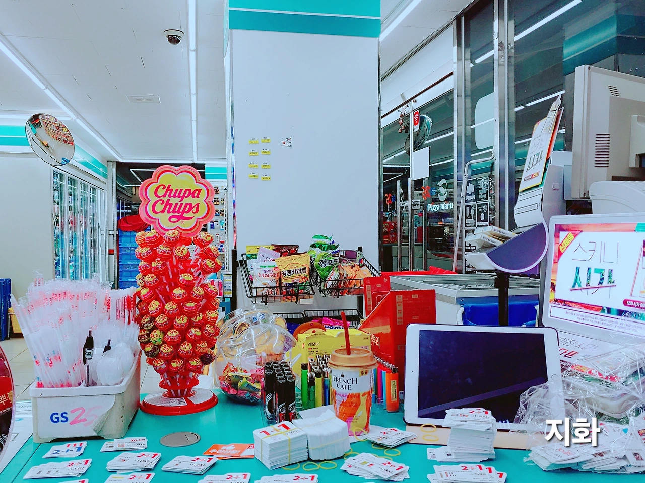 출입문과 계산대 앞이 전부 통유리로 되어 있는 구조였다.