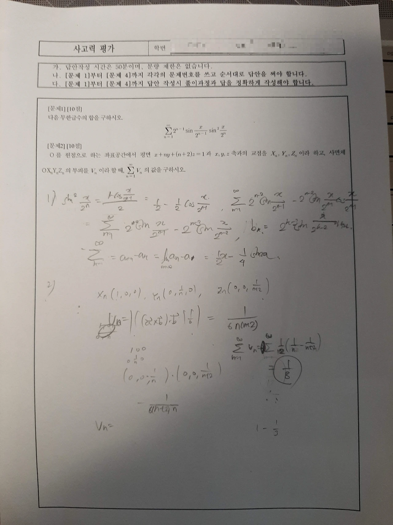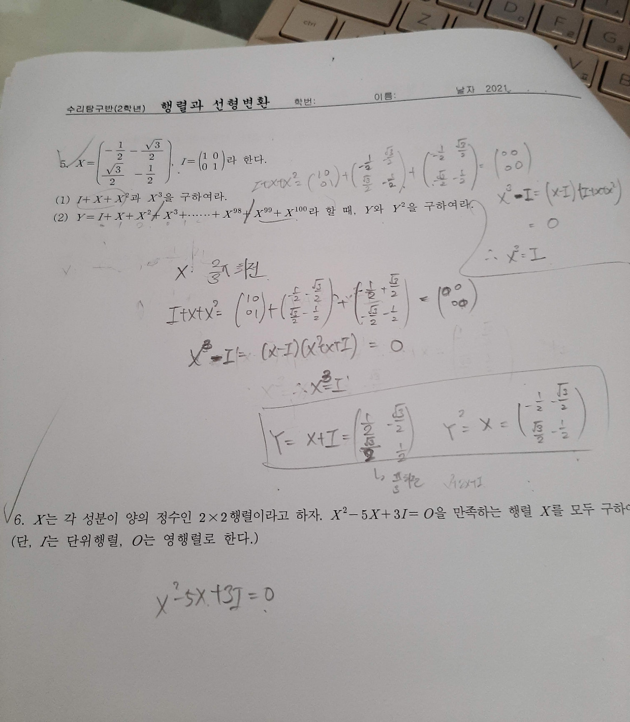 마음을 다잡고 다시 펜을 들었을 때, 처음부터 모든 것이 순조롭진 않았습니다. 하지만 꾸준히 노력한 끝에 2학년 2학기부터는 성적이 조금씩 오르기 시작했습니다. 과학고 2학년 2학기에는 고급수학 I을 비롯해 고급 생명과학, 고급 물리학, 고급 화학 등을 배우게 되었습니다. 특히 고급수학 I에서는 행렬, 복소평면, 그래프 이론 등 일반 고등학교에서는 접하기 힘든 내용을 다뤘습니다. 개념 자체는 어렵지만, 문제의 난이도는 비교적 직관적이었기에 노력한 만큼 결과가 나왔습니다.