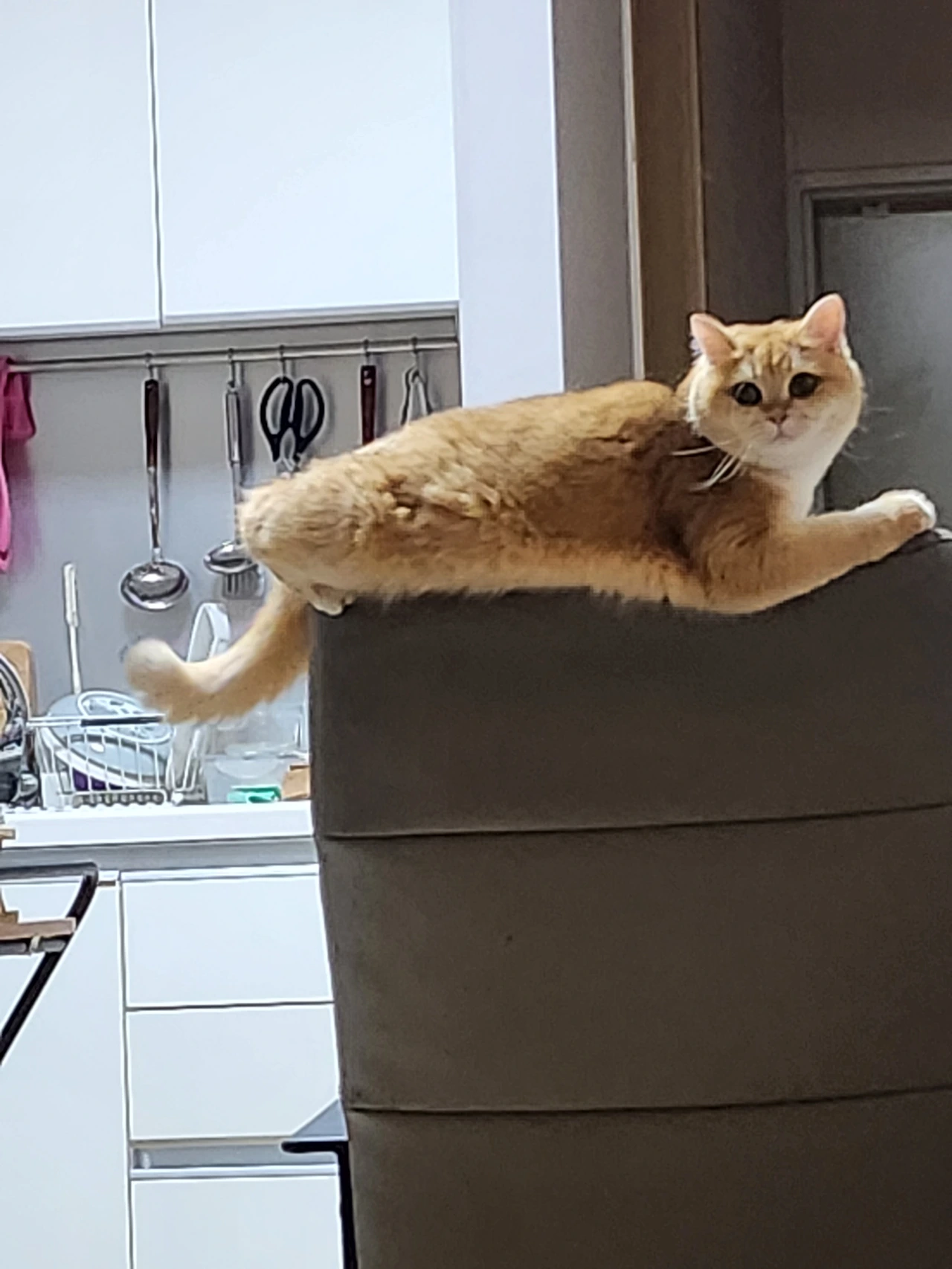 머루가 2층까지 올라간 모습. 아직은 구름다리가 낯선 거 같다.