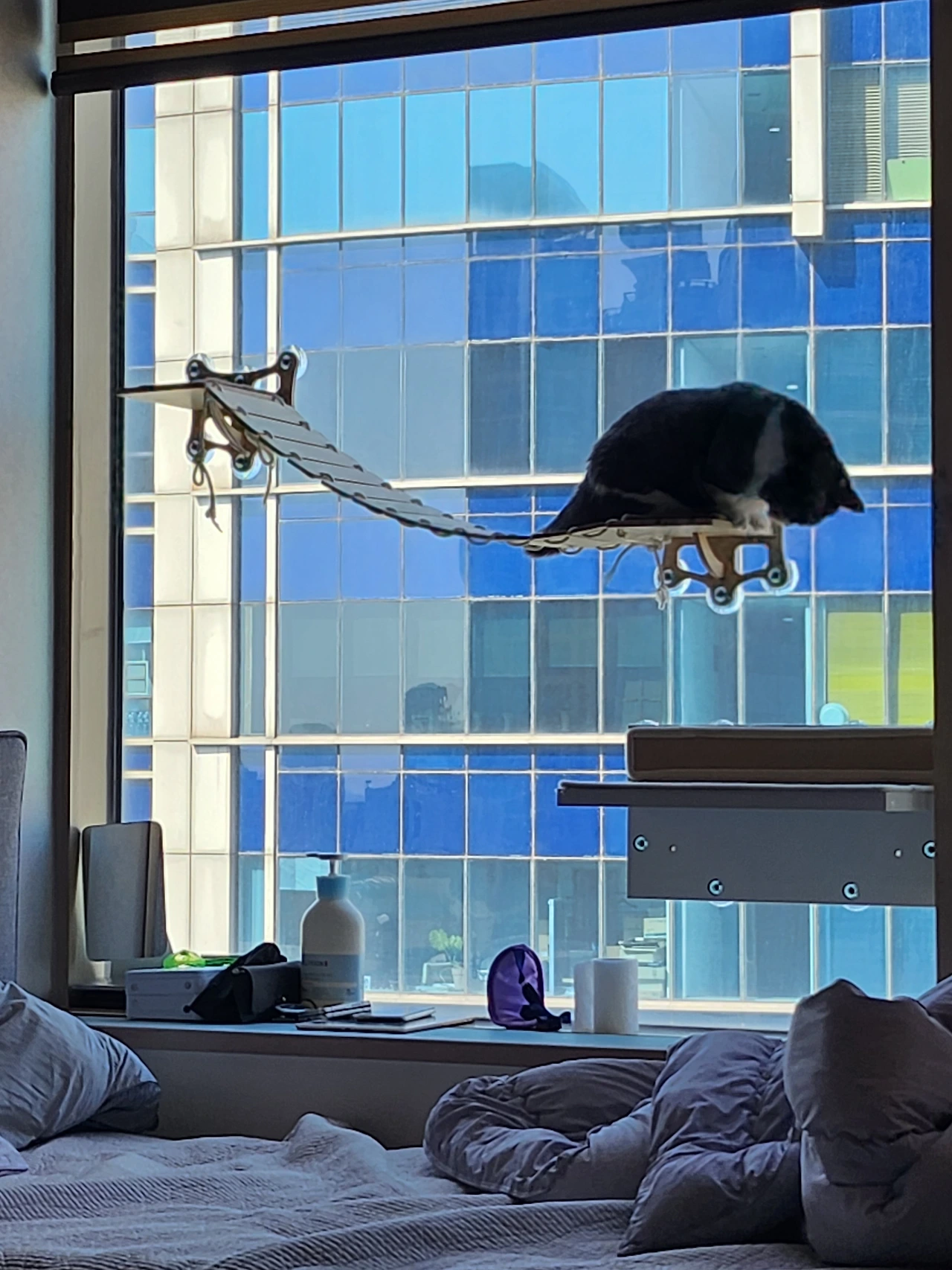 창가에 캣스텝부터 우선 설치해 주기로 한 것이다.