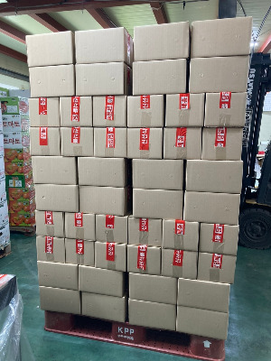 “이제 내가 원물 넣을게. 네가 이거 한 번 해봐. 빨간 테이프로 테이핑 하고 송장 붙이고 팔레트에 차곡차곡 쌓으면 돼! 여섯 개씩 네 줄. 할 수 있지?”