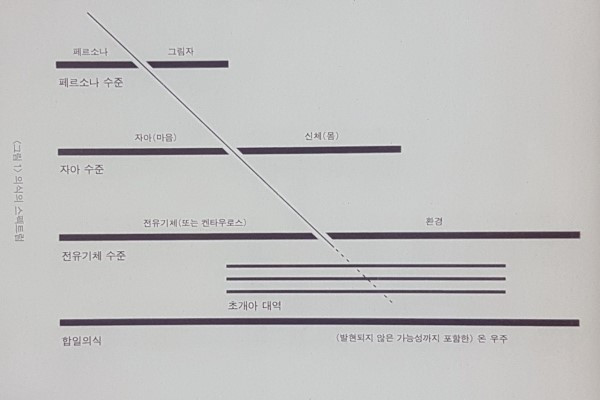 저자는 표를 통해 최고도의 인식단계인 합일의식을 맨 아래에 위치시키고, 가장 협소한 자아인 페르소라는 최상위에 위치한다. 그는 자아의 확대 과정을 줄곧 ‘하강’으로 표현한다. 우리가 이를 통해 알 수 있는 것은, 합일의식의 단계가 가장 내밀하고 잊혀진, 즉 자아의 원형이라는 암시이다. 즉, 태초의 인간 - 개인 단위에서는 ‘갓난아이’ - 는 온 우주와 자신 간 경계를 짓지 않는 ‘합일의식’의 단계에 있으나, 성장하고 의식이 발달하는 과정에서 경계를 지어오며 결국 협소한 자아로 귀결되는 경향이 있다는 것이다.