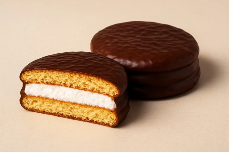 초코파이는 1974년에 국내에 처음 등장해, 어느덧 반세기를 훌쩍 넘긴 레전드급 과자다. 두 개의 동그란 비스킷 사이에 푹신하고 쫀득한 마시멜로를 듬뿍 넣고, 그 위를 초콜릿으로 감쌌다. 한입 베어 물면 겉은 바삭하고, 안은 말랑하다. 달콤함이 분명하고, 망설일 틈이 없다.