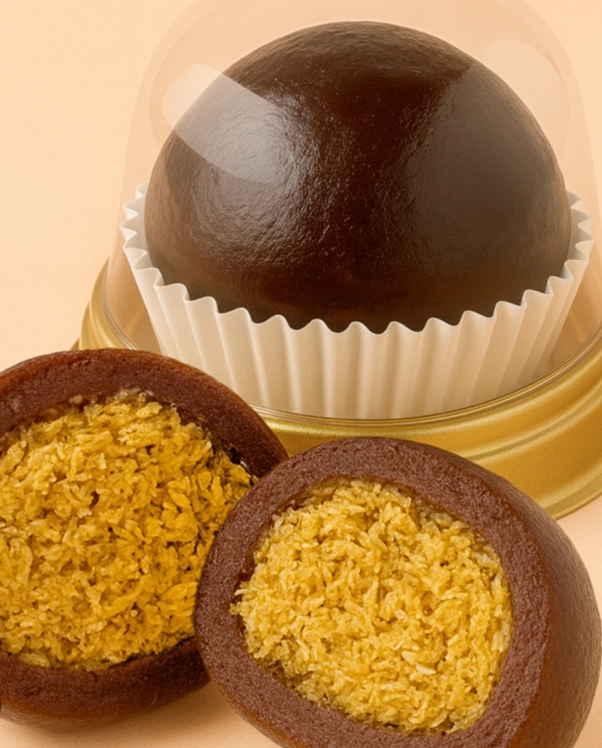 한 입 베어 물면 쫀득하다가, 어딘가에서 아삭거리고, 다시 초콜릿이 밀려온다. 겉은 찹쌀떡처럼 쫄깃하지만, 단면을 가르는 순간 전혀 다른 식감이 튀어나온다. 초콜릿의 진한 풍미 속에서 느껴지는 그 아삭함. 쫄깃함과 아삭함이 동시에 존재하는 묘한 대비다.