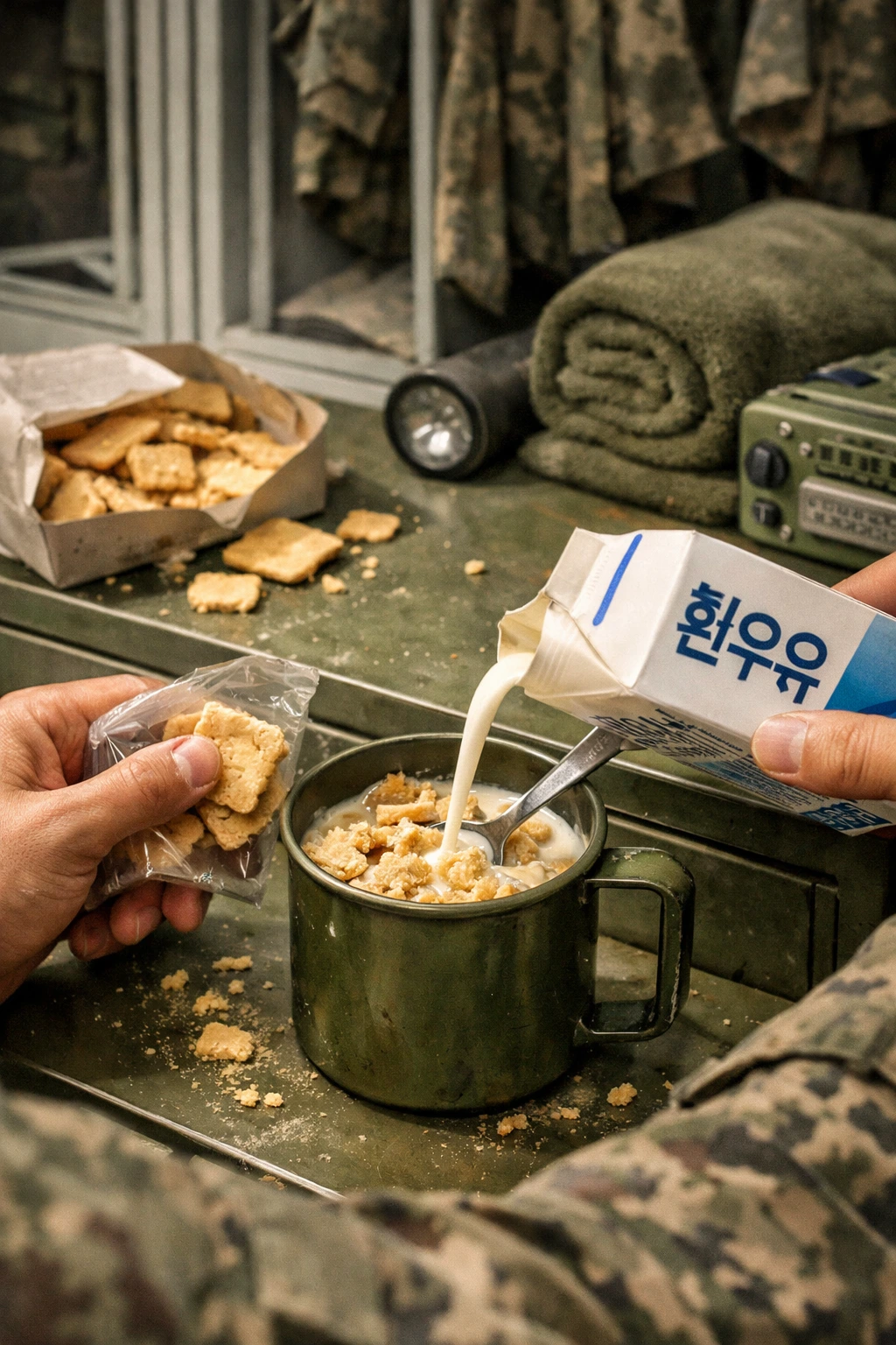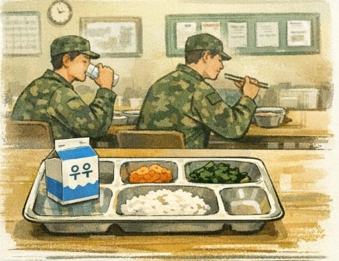 군대에서는 유독 흰 우유만 나왔다.
