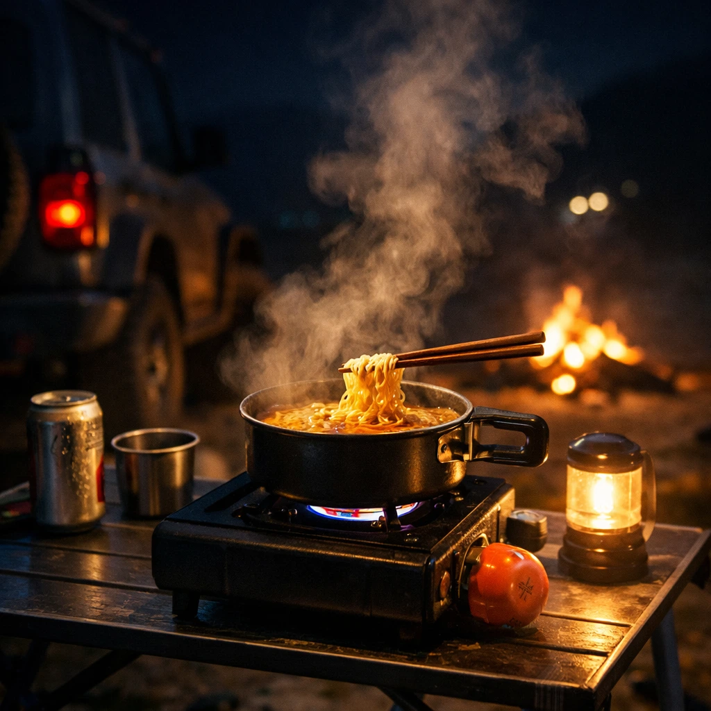 버너를 꺼내고, 물을 올리고, 라면을 끓이기 시작했다.