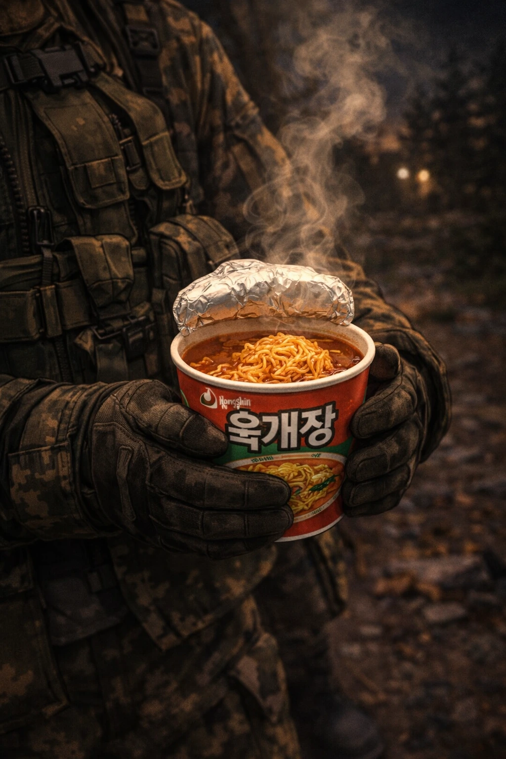 첫번째는 훈련병 시절 야간행군 간 먹은 육개장 컵라면이다.