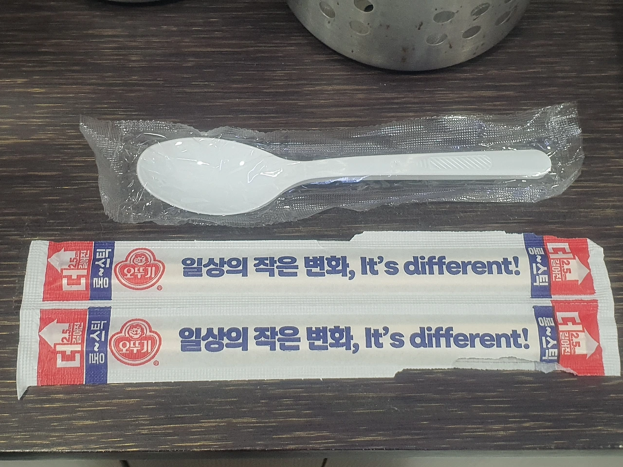나무젓가락 포장에도 흰 색이 있고, 일회용 숟가락도 흰 색이 있다.