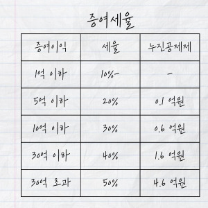 증여세율은 다음과 같아요.