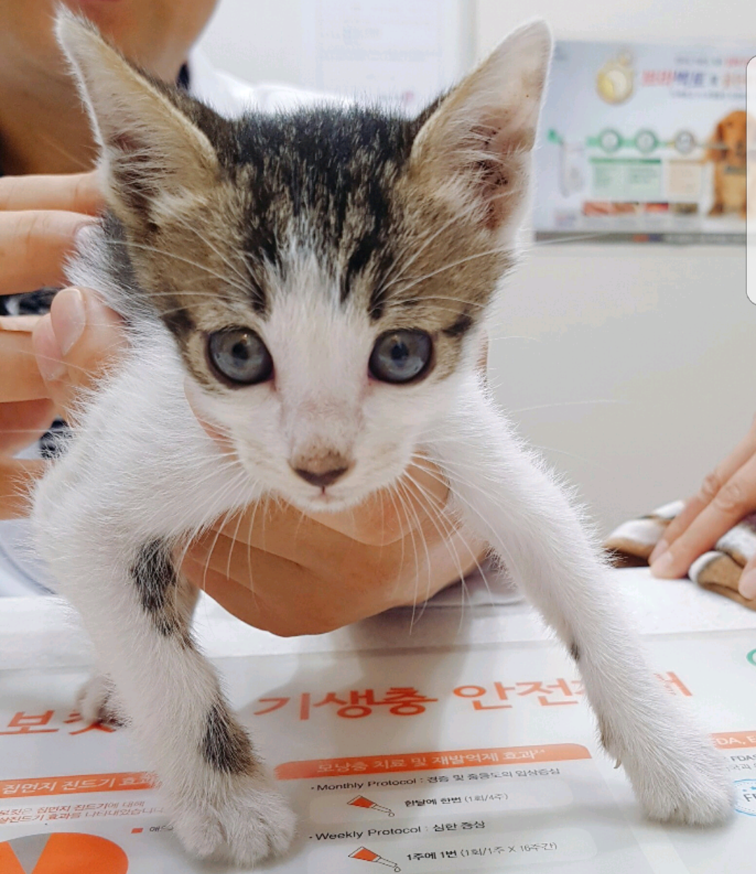 2018년 8월 당시 너부리는 추정나이가 4살이었고 내가 일하던 병원에서 중성화수술과 눈치료를 받게 된다.