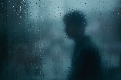 흐릿한 유리창에 비가 흐르고, 그 너머로 엷은 실루엣. 경계는 흐려지고, 안과 밖의 세계는 뒤섞인다.