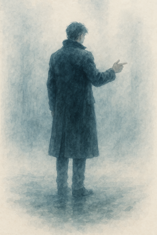 나는 본능적으로 뒤로 물러섰다. 그러나 발이 물웅덩이에 걸려 균형을 잃었다. 그 순간, 누군가의 손이 내 팔목을 강하게 붙잡았다. 차갑고도 단단한 손이었다. 피부는 얼음처럼 차가웠지만, 그 힘은 망설임이 없었다. 안개 너머에서 검은 코트를 입은 남자가 나타났다. 얼굴은 반쯤 가려져 있었지만, 그 눈빛만큼은 숨길 수 없었다. 그것은 길을 잃은 자의 눈빛이 아니라, 길을 찾으려는 사냥꾼의 눈빛이었다. 그의 시선은 내가 아니라 내 뒤쪽 어둠을 경계하고 있었다.