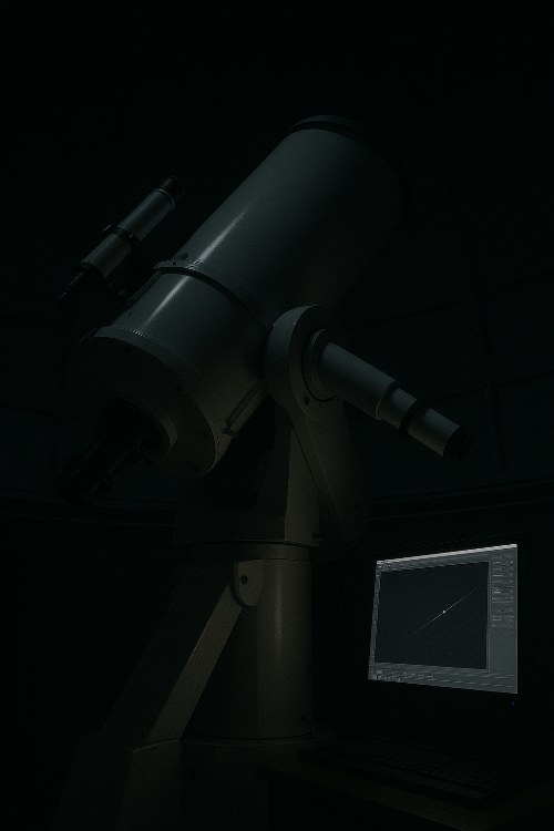 천문대 주망원경과 유도망원경이 같은 지점을 추적하는 장면
