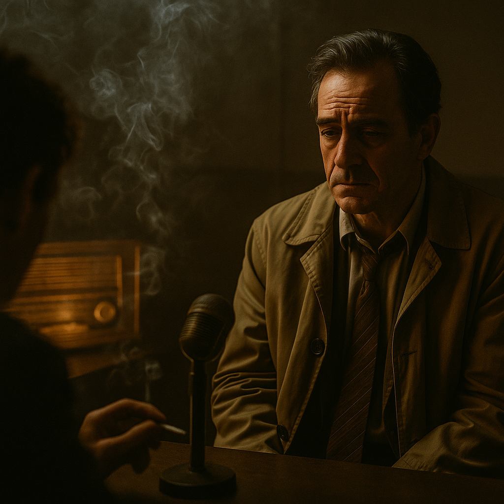 담배 연기와 라디오 잡음이 얇게 겹쳐 가게가 즉석 심문실로 변한다