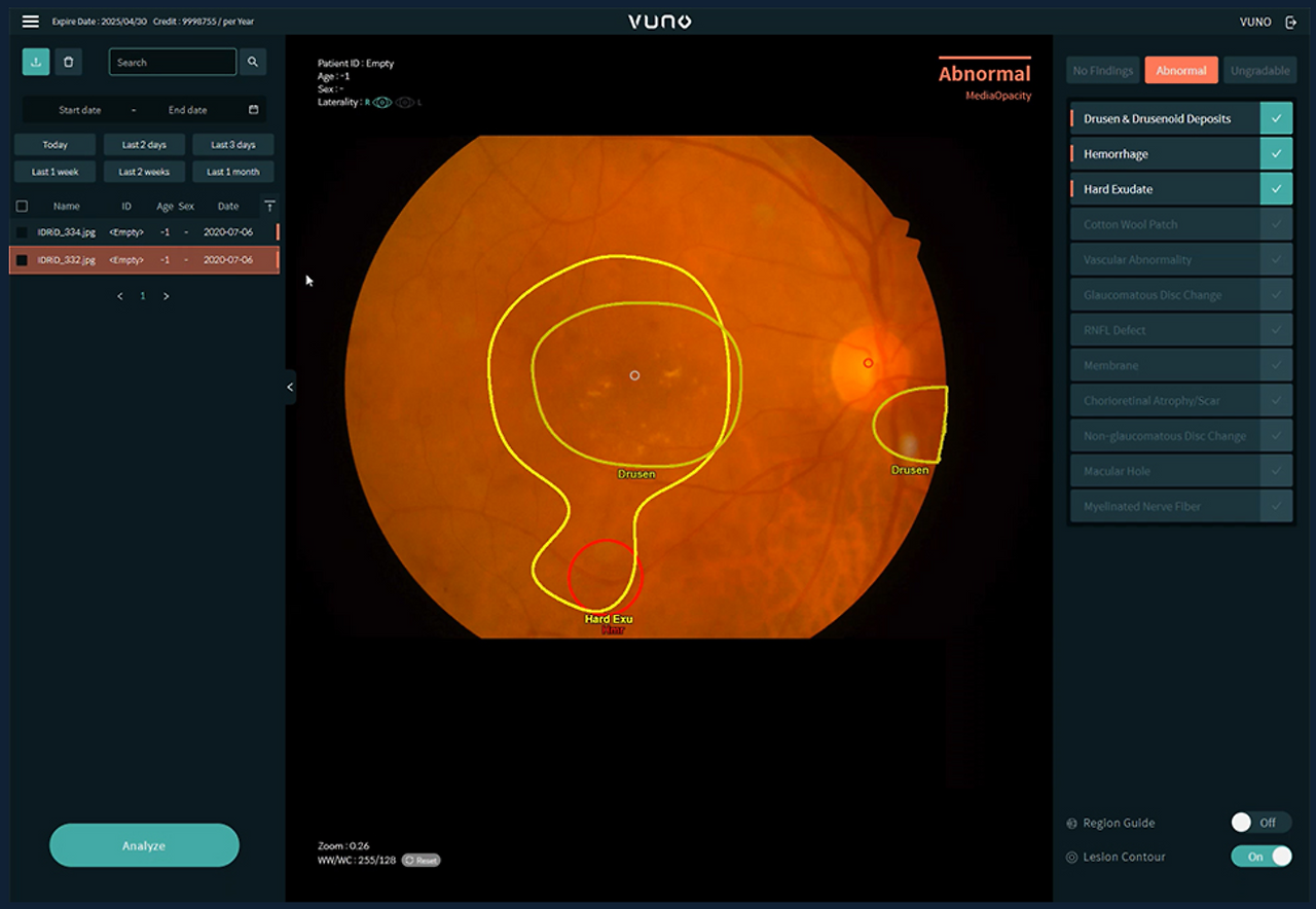 안저 영상은 망막의 구조와 기능을 평가하는 중요한 진단 도구입니다. 망막은 빛을 감지하여 시각 정보를 뇌로 전달하는 눈의 중요한 부분이기 때문에 망막에 질환이 발생하는 경우 시력 손상, 시각 장애 등의 심각한 결과를 초래할 수도 있습니다.