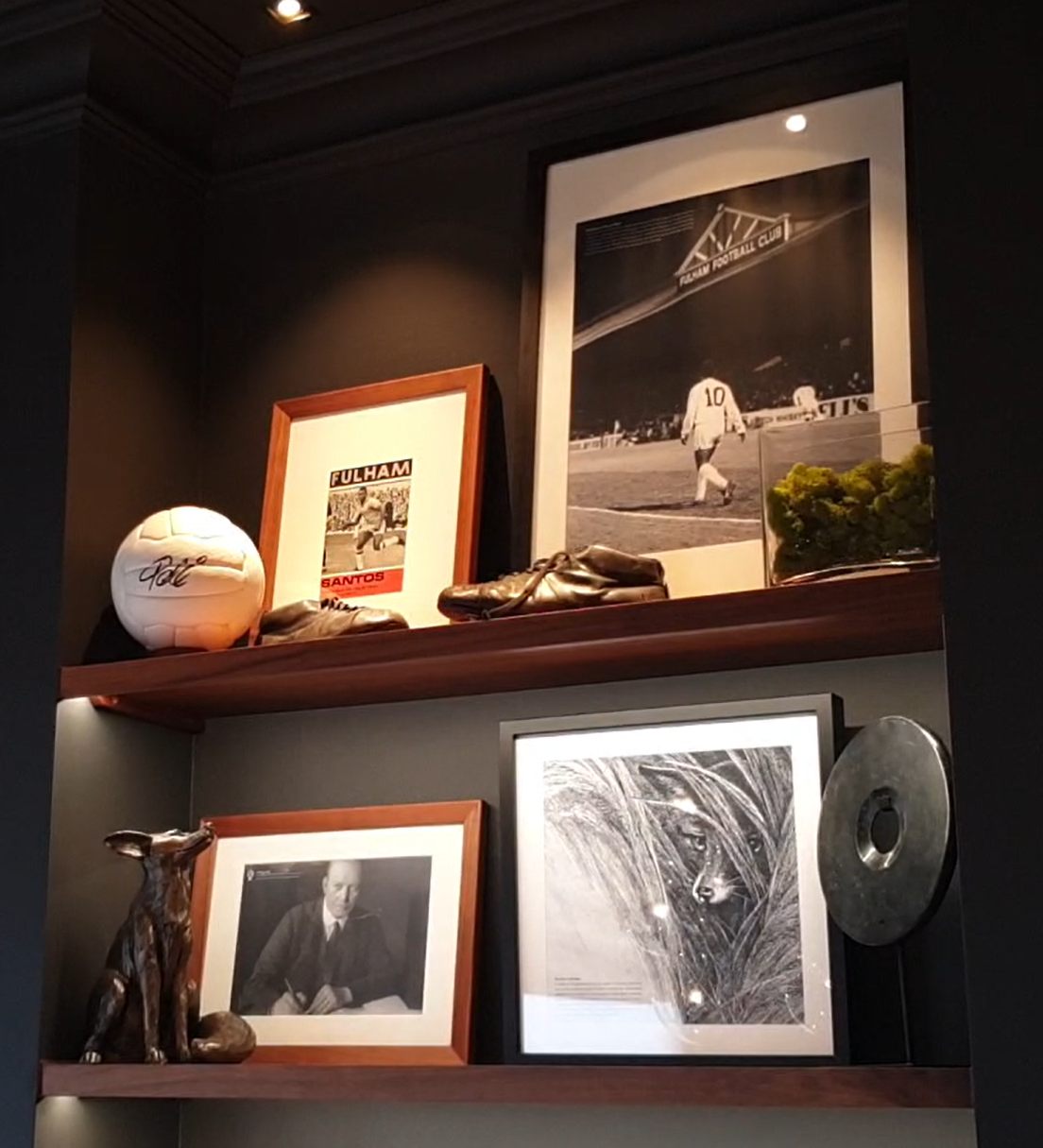vip 룸은 진짜 깔끔했다(오래된 건물이라 작긴 했지만), 그 vip 룸 한편을 장식한 건 펠레의 축구화였다. 1973년 3월 12일 펠레의 산투스와 풀럼이 친선경기를 크레이븐 코티지에서 가졌고, 그때 신었던 축구화와 축구공, 그리고 잔디라고 한다. 밑에 있는 건 크레이븐 코티지를 지은 건축가와 그 사진이라고 한다. 크레이븐 코티지는 런던에서 가장 오래된 경기장이라는 역사가 있는 만큼, 크고 화려하지는 않아도 이렇게 역사적인 소장품들과 그 역사를 깔끔하게 큐레이팅해 놓은 느낌이어서 매우 인상 깊었다.