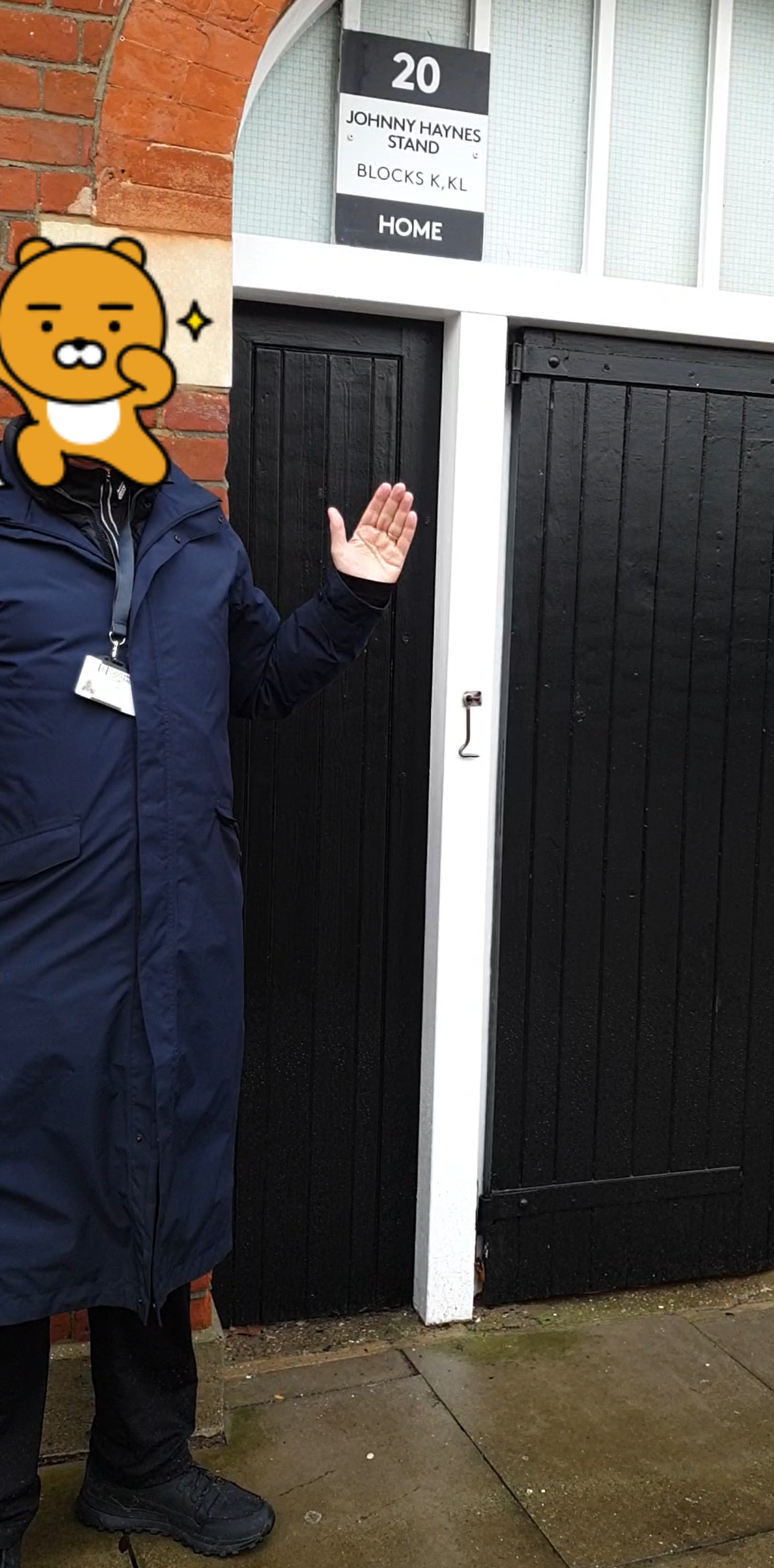 이게 안쪽에서 본 출입문의 모습인데 들어가 보면 진짜 비좁다. 또 하반신 정도 높이로 영국식 회전문 turnstile 이 있는데, 너무 어두워서 영상에 담기지는 않았다..(웨스트햄 홈구장에서 다시 한번 보게 된다). turnstile과 좁은 출입구의 콜라보로 진짜 요즘 성인들이 지나다니기에는 쉽지 않은 사이즈의 출입구가 되었는데, 축구를 보기 위해서라면 좁은 출입구쯤이야 큰 문제는 되지 않을 거다.