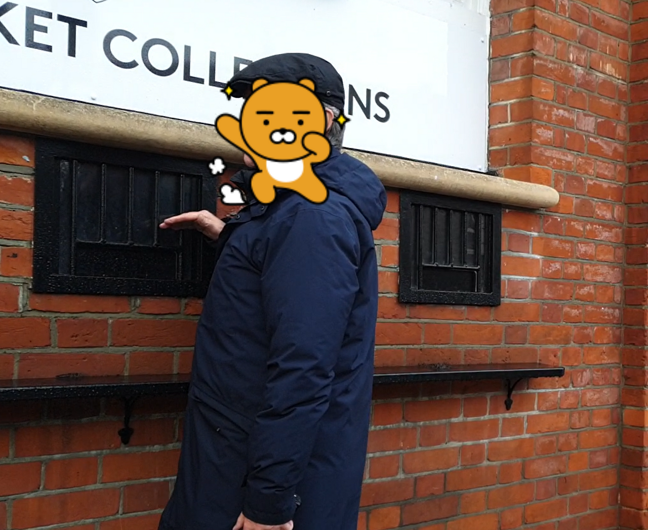그리고 외벽에 있는 출입구를 보여주시는데, 이게 처음 지어진 상태 그대로의 출입구라고 한다. 웃으면서 옛날에는 못 먹었기에 이 정도 사이즈면 충분했다고 설명하시는데 진짜 문이 작긴 했다(오래된 스타디움들이 모두 공통적으로 가지고 있는 특징이었다). 가이드분과 나 둘 다 173~5 정도인데, 머리가 닿을만한 높이었으니... 티켓을 수령하는 티켓 오피스 또한 마찬가지였다 ㅋㅋ 영상에서는 허리를 숙여야 한다고 액션 하시는데 귀여우신 면이 있으셨다.