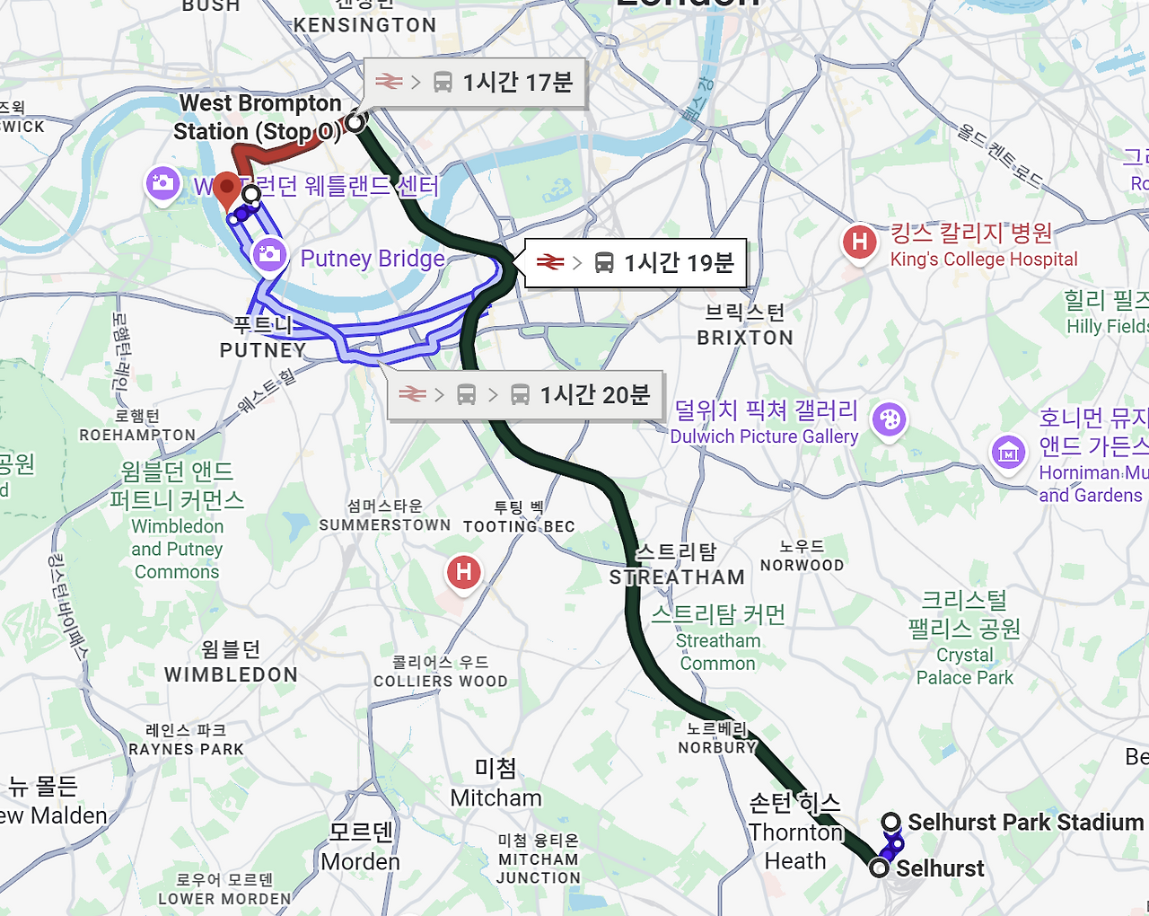 그렇게 투어가 끝난 뒤 미트로비치 유니폼을 하나 사서 리셉션에 인사를 드리고 나왔다.(크리스털 팰리스 쇼핑백도 받으러..) 걸어서 30분 정도 거리에 있는 한식당 프랜차이즈를 들리고 10분 정도 더 걸어가면 스탬퍼드 브리지가 있었기에, 또다시 걷기 시작했다