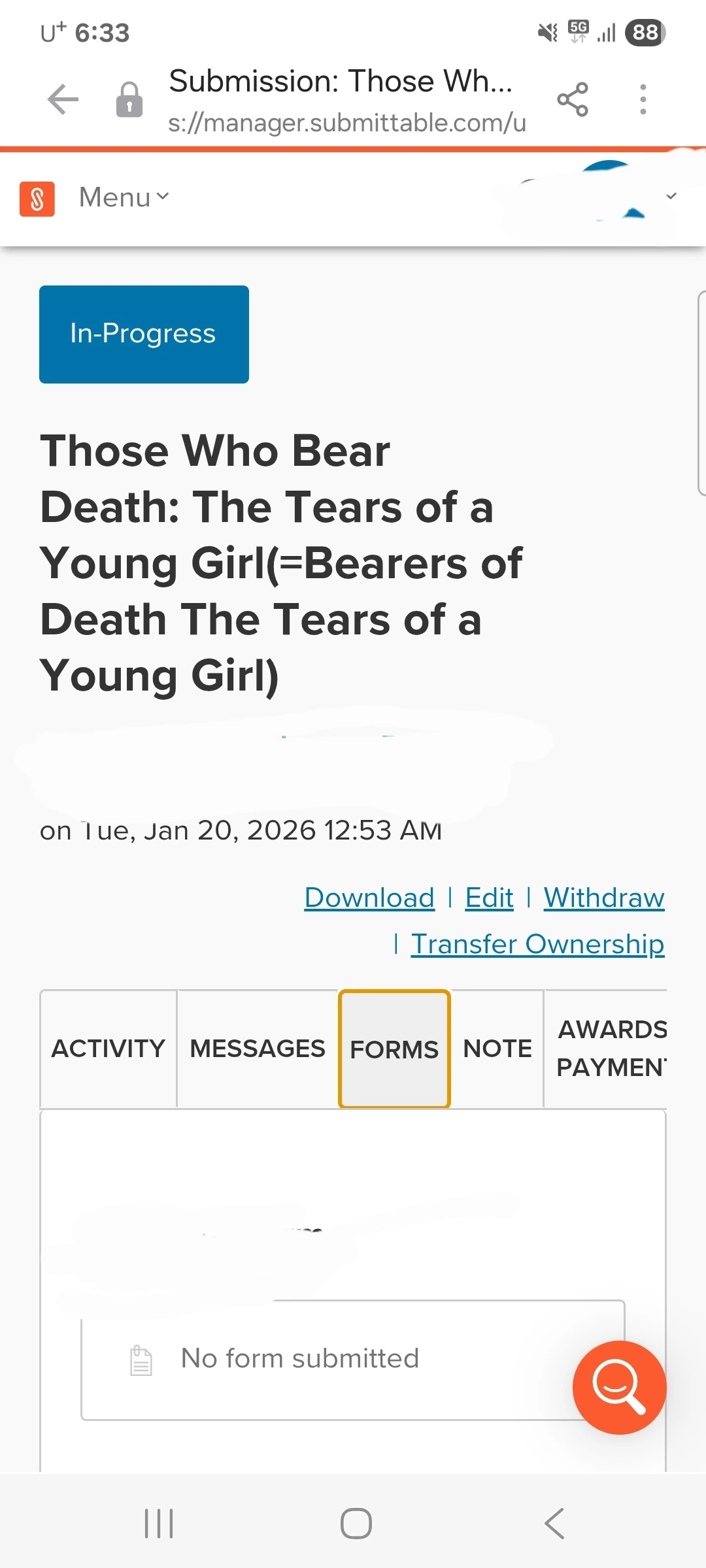2026년 1월 20일에 원고 일부를 제출했던 해외 출판사의 원고 검토 진행 단계가 In-Progress로 바뀌었다.