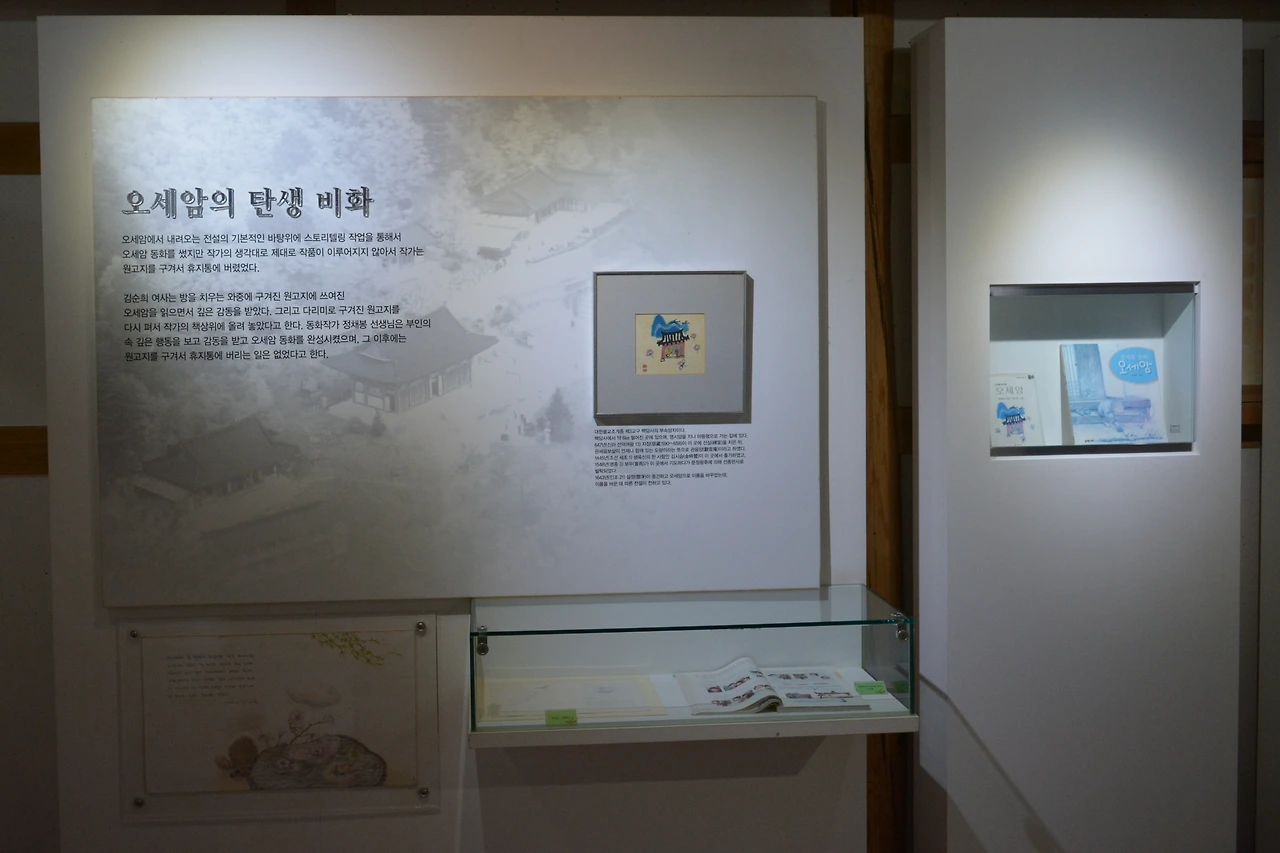 특히 '오세암'을 비중 있게 전시하고 있었다. 그도 그럴 것이 그의 작품 중 대중적으로 가장 큰 성공을 한 작품 중 하나이기도 하고, '국산' 애니메이션의 성공으로 당시 상당히 이슈가 되기도 했었다. 제패니메이션과 디즈니 같은 외국 만화 영화가 주를 이루던 한국 만화 영화 시장에서 국산 애니메이션을 성공은 이례적이기 때문이었다.