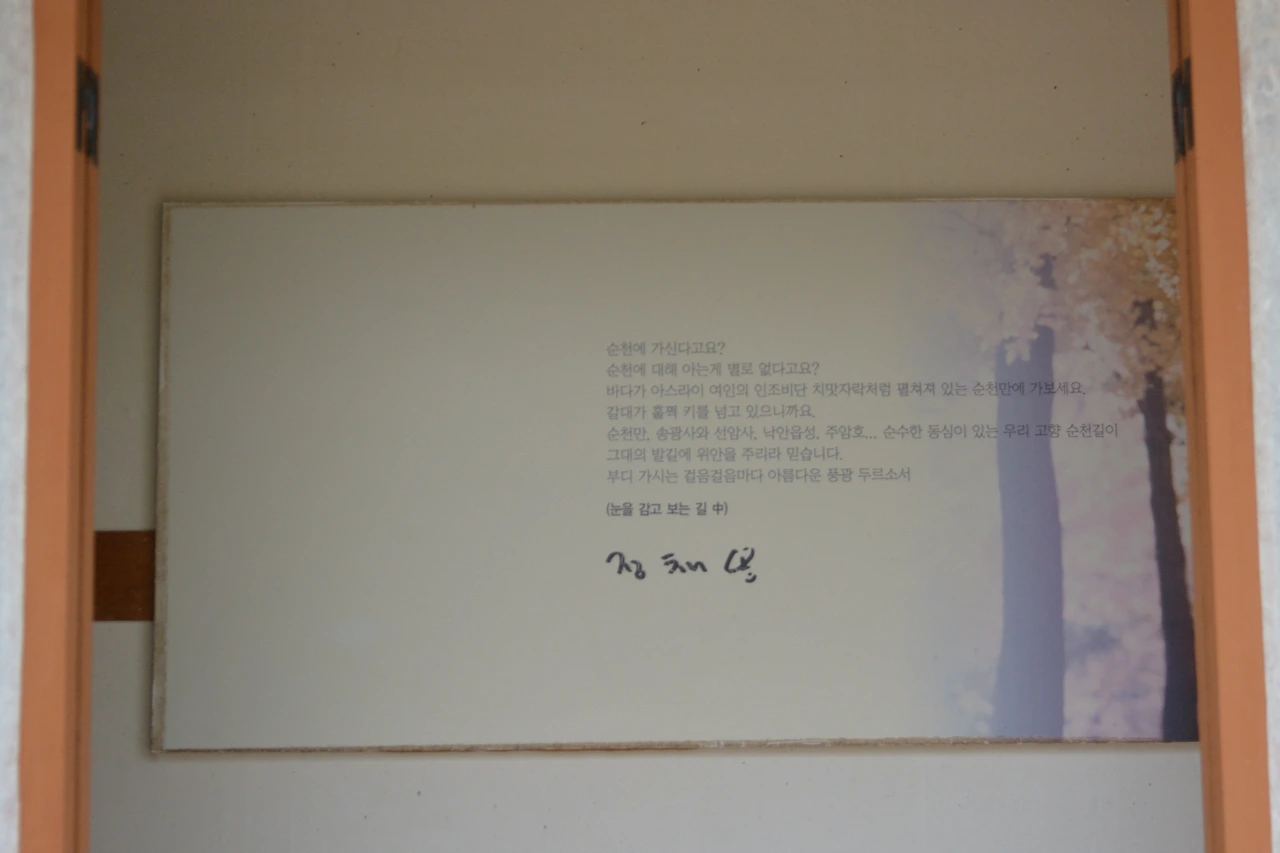 출구에 정채봉의 글귀가 우리에게 순천을 둘러보라고 권하고 있다.