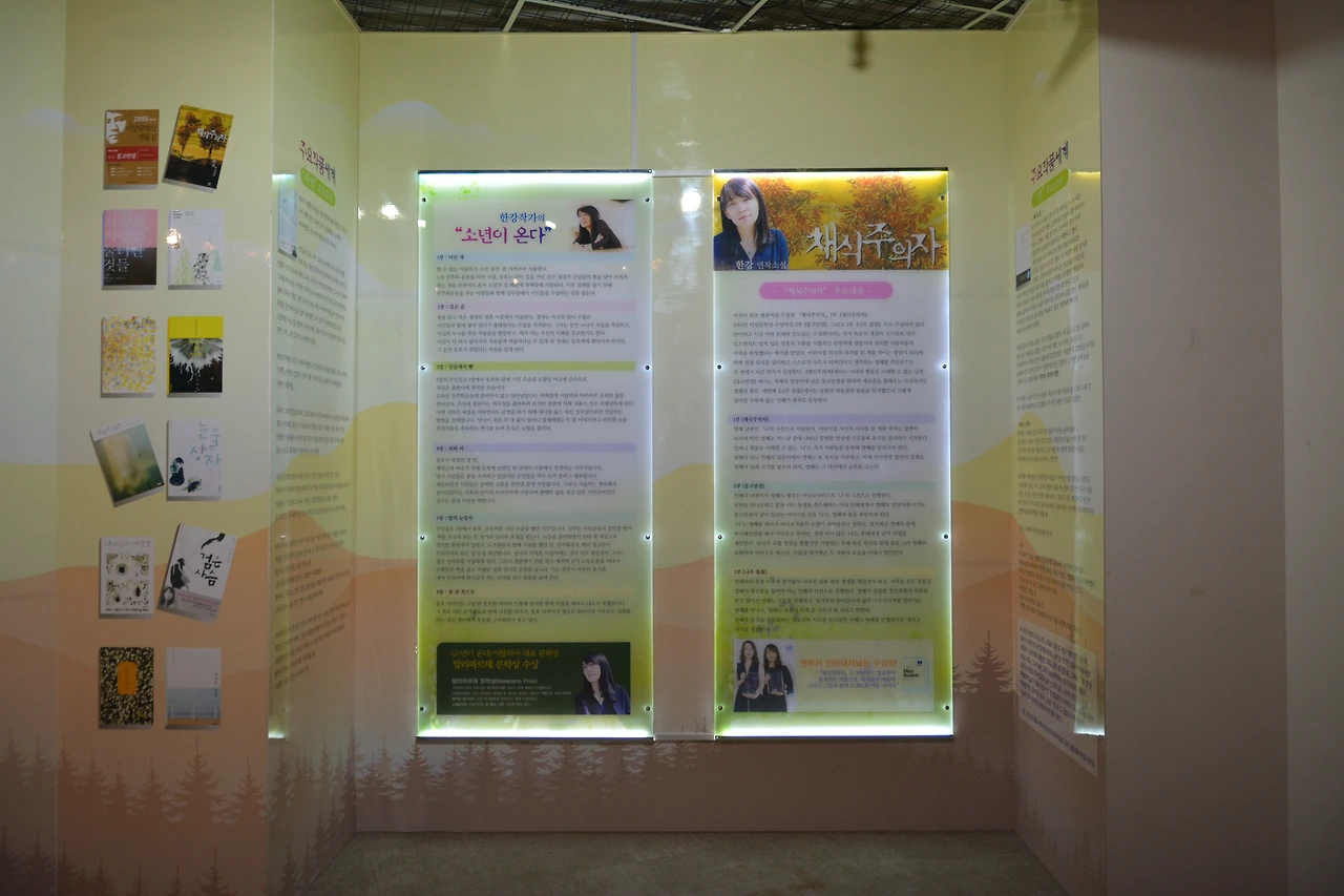 그리고 노벨 문학상의 세계적인 작가 '한강', 그는 장흥으로의 문학기행 붐을 일으켰다고 한다. 그래서 천관문학관에서 결코 빼놓을 수 없는 작가일 것이다. 작년에 이미 한강 작가의 전시 코너가 마련되었다고 한다. 이상문학상 수상작을 해마다 사서 읽는데, 2005년 몽고반점을 읽고 처음 '한강'을 알게 되었다. 그 후 '채식주의자', '작별하지 않는다'를 읽었는데, 그의 문장과 그 문장이 그려내는 수많은 감정들은 날카롭게 마음속에 들어와 자리 잡았다. 그 어느 소설보다 깊게 들어왔다. 그래서 '소년이 온다'는 차마 읽기 못했다. 작년 '소년이 온다.'를 펼쳤지만, 그 아픈 감정들을 받아들일 용기도 없었고, 나는 그것을 감당하지 못하고 있었다. 결국 소설 중반도 가지 못하고 덮었다. 결국 아마 소년이 온다는 한동안은 읽지 못할 것 같다.