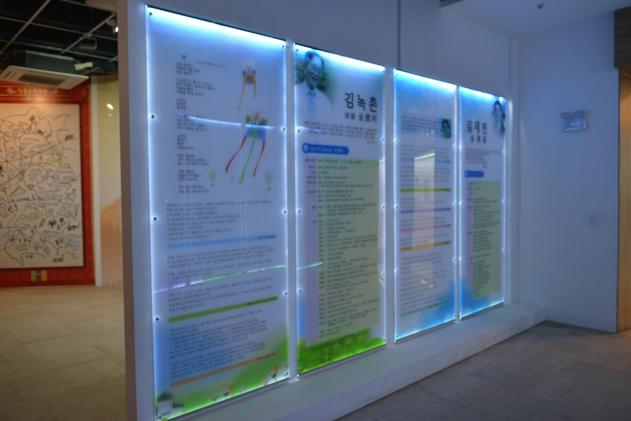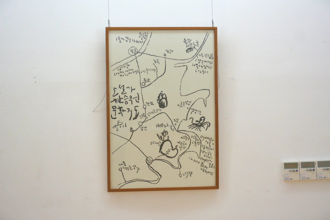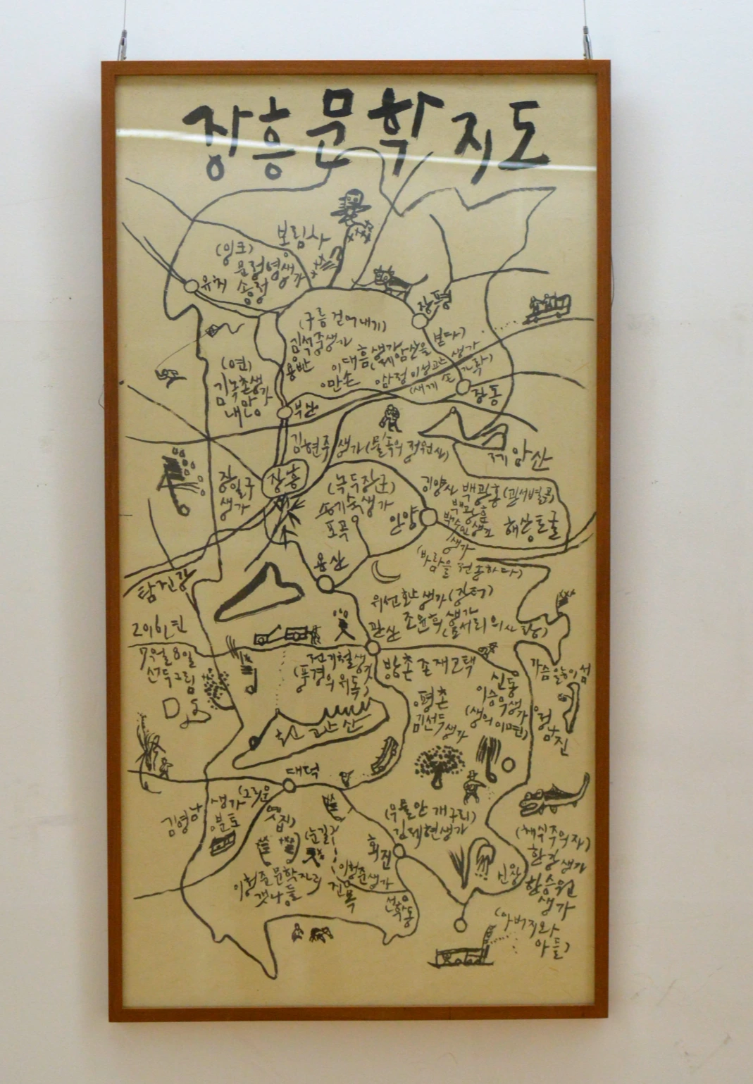 제1전시실은 기획전시로 '문학지도'를 전시해 두고 있었다. 작가별로 생가, 문학 속 배경이 된 곳들이 그려져 있었다. 하지만 전시에 대한 구체적인 설명이 없었다. 문학관 안내 소책자의 첫 장에 있는 '전국최초 유일 문학관강 기행특구 장흥군'이라는 문구에서 짐작해 보면, 아마 장흥의 문학 기행을 위해 문학지도를 만들고 이를 전시하고 있는 것 같았다.