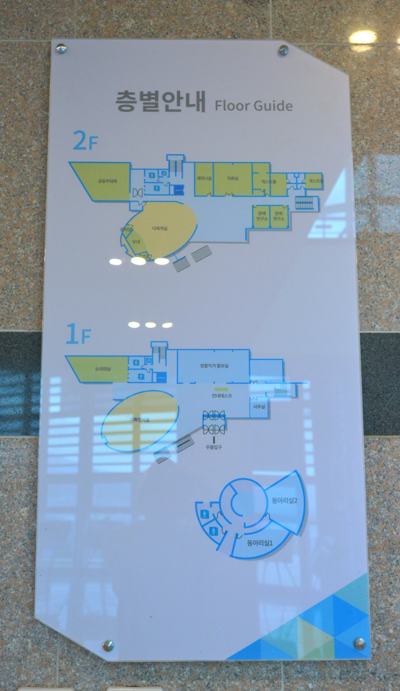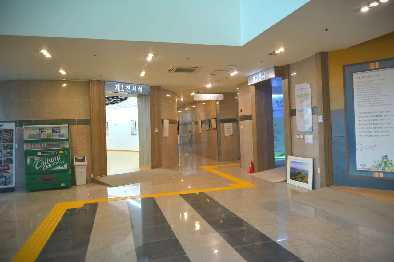 입구에 들어서면 왼쪽으로 제1전시실과 제2전시실이 보인다. 층별 안내를 보면 제1전시실은 '기획전실', 제2전시실은 '장흥작가 홍보실'로 안내되어 있다.