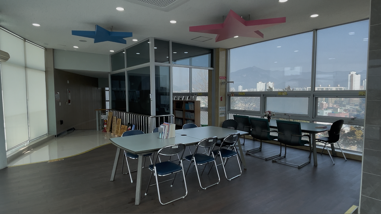 3층은 어린이 도서관과 옥외휴게실이었다. 아이가 있으면 함께 앉아 시간 보내기도 좋을 것 같았다. 그리고 밖으로 나와 박재삼 시인 동상과 함께 앉아 사진을 찍었다. 사진 찍히는 걸 좋아하지 않은데, 아내가 좋아하는 시인과 함께 사진을 남겨야 한다며 찍어 주었다. 뭔가 진짜 시인이 옆에 같이 있는 것 같은 느낌이 들었다.