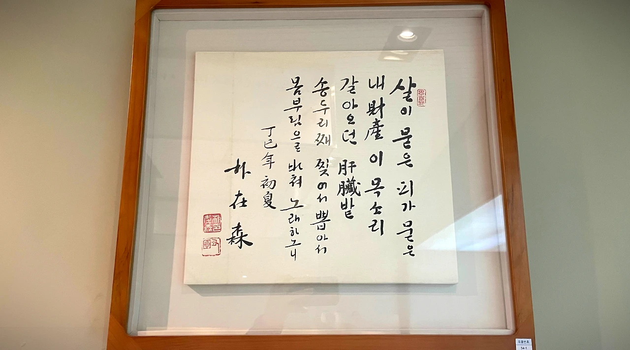 박재삼 시인은 붓글씨도 즐기셨다. 전시된 액자들을 보면 필체가 정말 좋아 보였다. 그리고 바둑을 좋아하셨다고 하는데, 바둑 관전기를 신문에 기재하여 생계에 보탬이 되기도 했다고 한다.