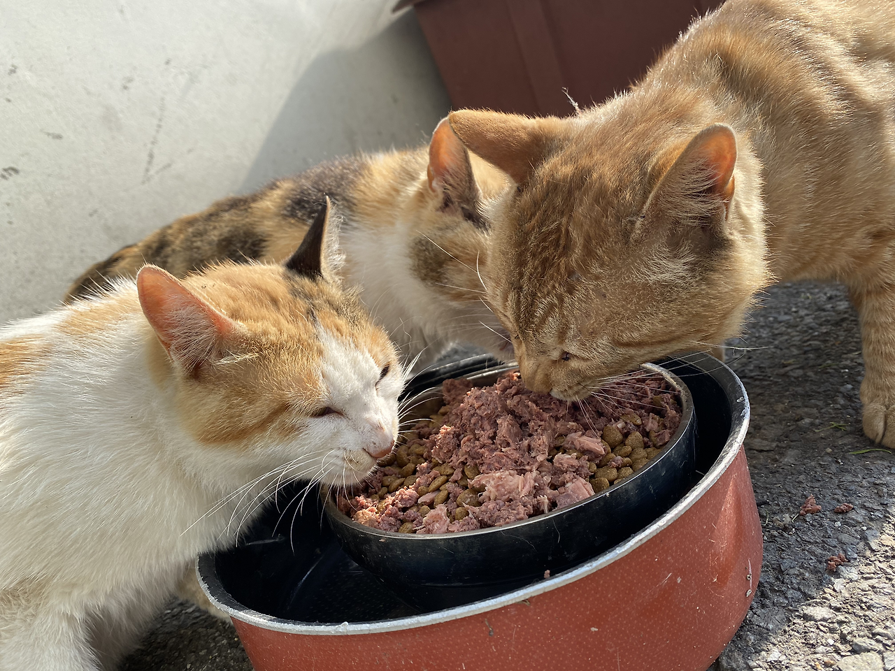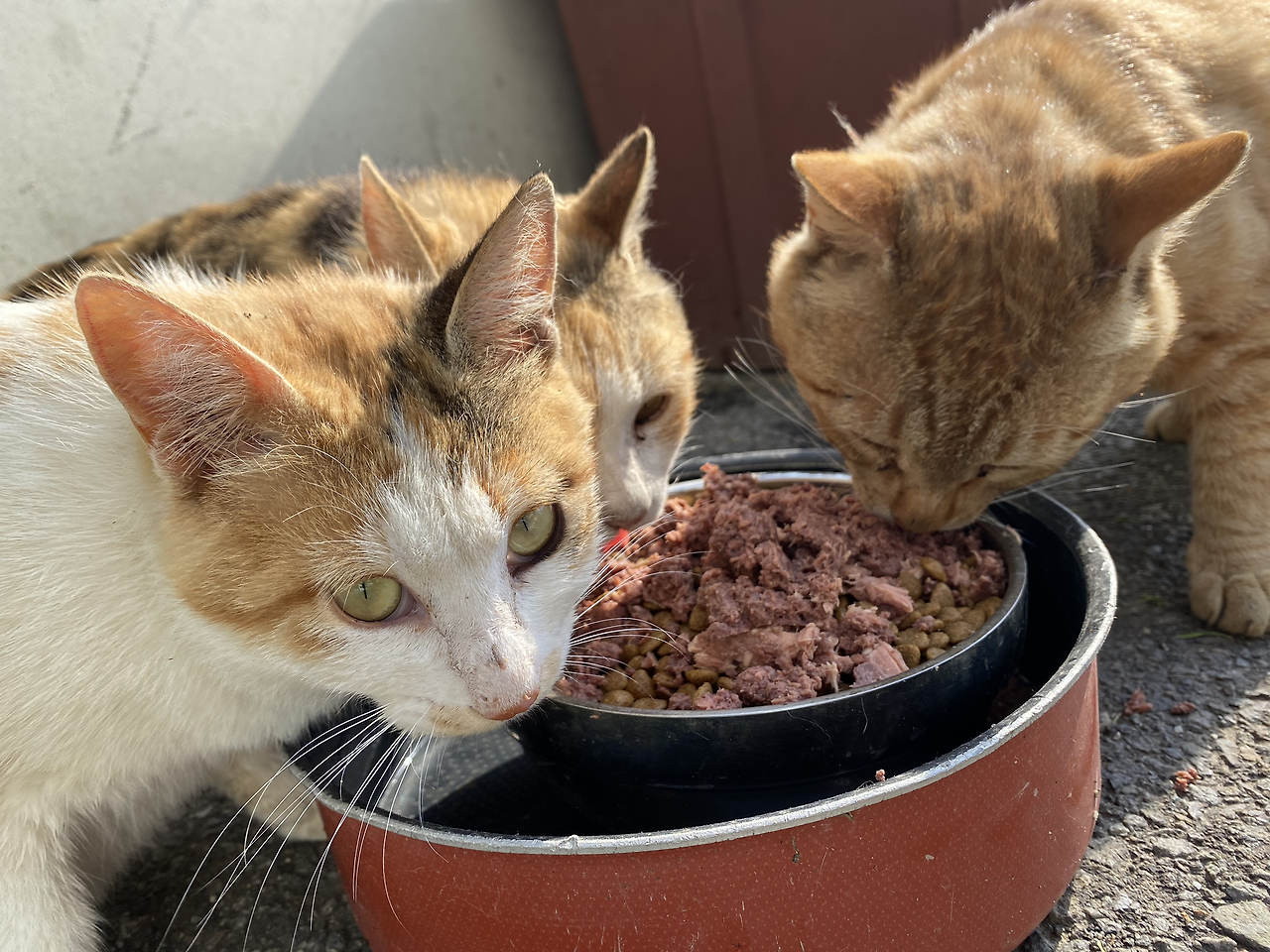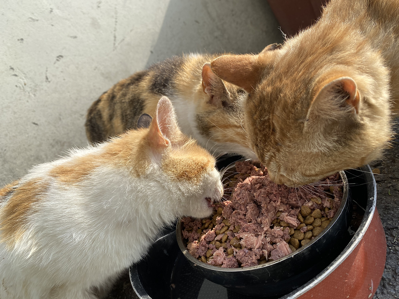 세 마리 밥을 주다가 한 마리라도 보이지 않으면 마음이 아주 헛헛햐.