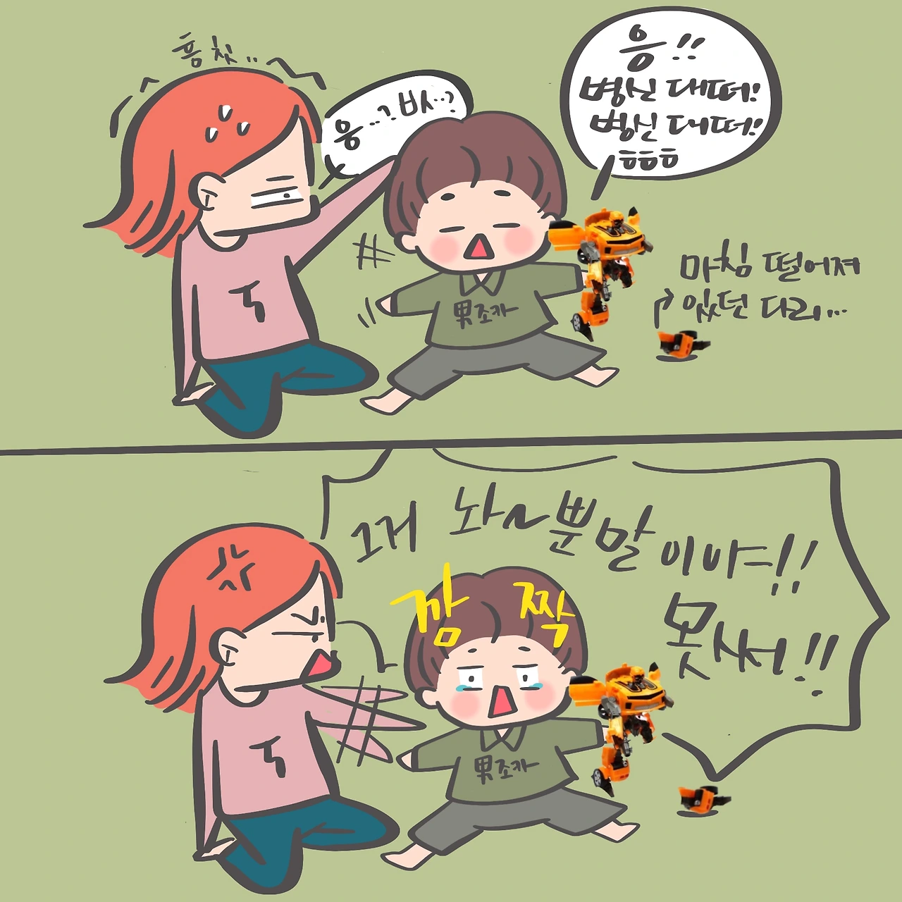 어느 날, 조카가 로봇을 가지고 놀고 있었다.