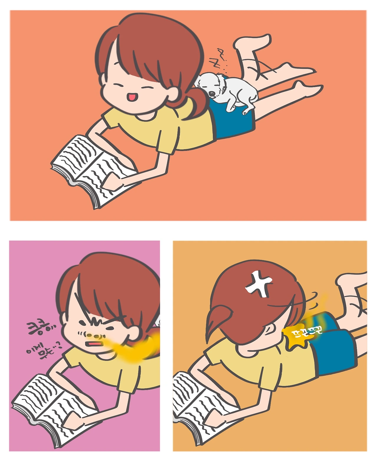 우리 아이는 복수의 아이콘이다. 혼을 내는 날은 꼭 저렇게 복수를 했다. 진한 소변의 냄새와 등에서 느껴지는 뜨끈한 액체…… 내 등이 그날의 배변패드였다.