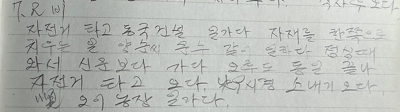 오후도 동일. 끝나 자전거 타고 오다. 9시경 소나기 오다.