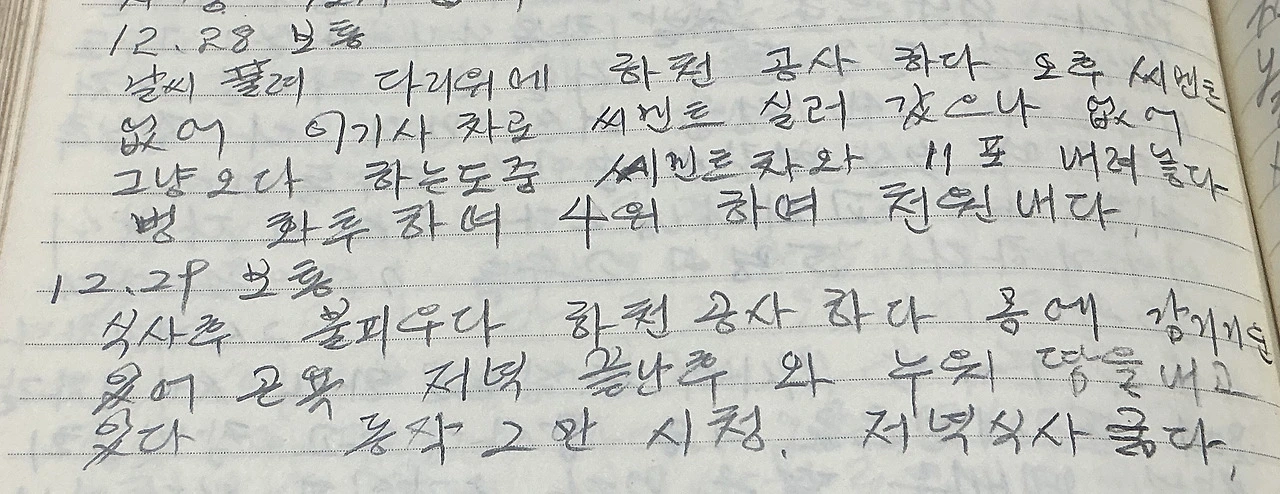 일기의 대부분의 기록은 현장 일을 한 기록이 많고 돈을 빌렸다는 내용과 화투를 쳤다는 내용이 참 많네. 현장 사람들, 동네 사람들과 화투를 많이 치신 것 같다.